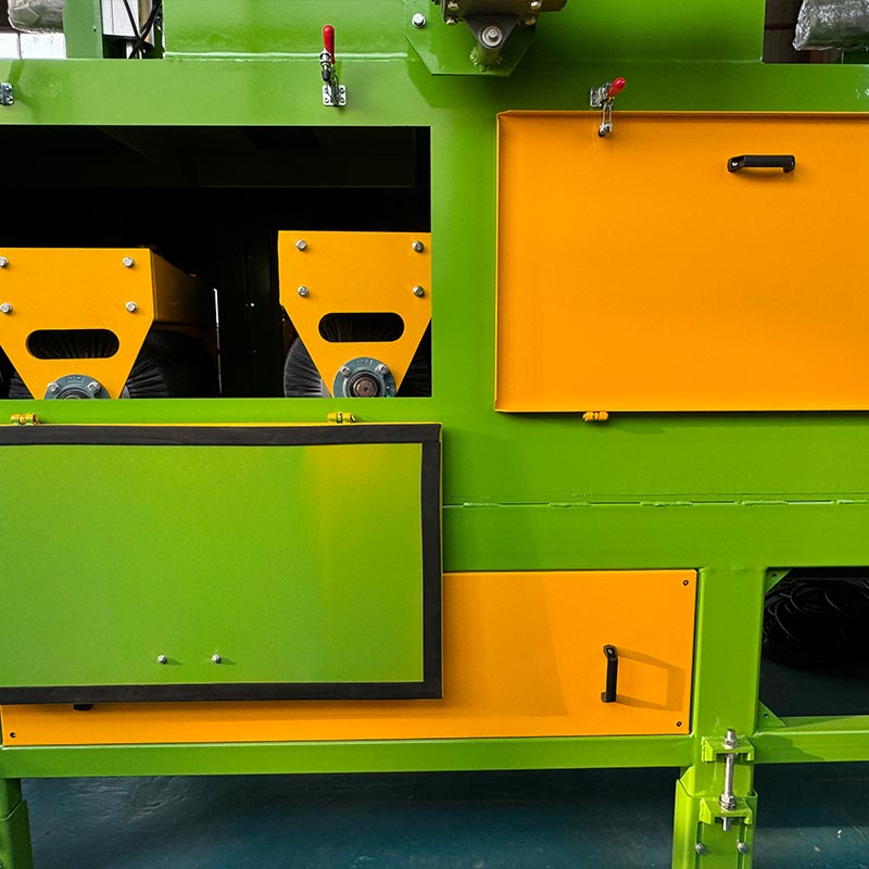 نظام ناقل المسار المطاطي، حيث تقوم 8 مجموعات من بكرات الفرشاة الكاشطة بإكمال المواد الخشنة والناعمة بالتتابع