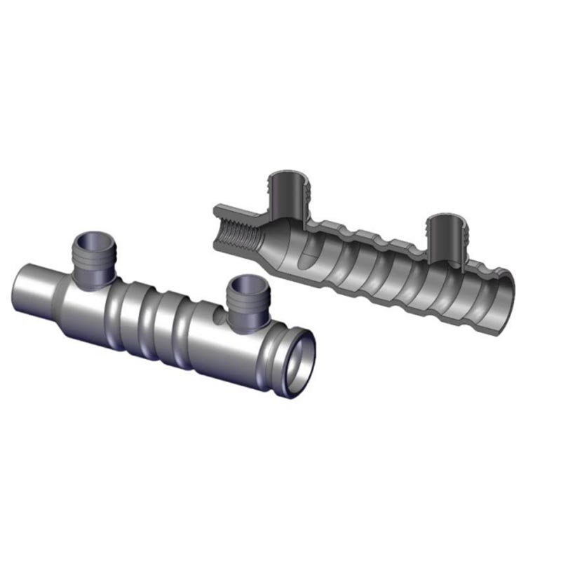 في كلا الطرفين، مناسب لمفاصل حديد التسليح ثنائية الاتجاه؛ الأكمام شبه الحشو لها وصلة ملولبة في واحدة